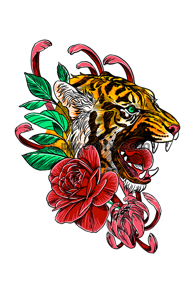 PSD -12" x 16"-300dpi-no_repeat-editable_layered_photoshop_psd-no_editable_vector_pdf_or_eps-no_fontsFLORALS WITH TIGER 4339