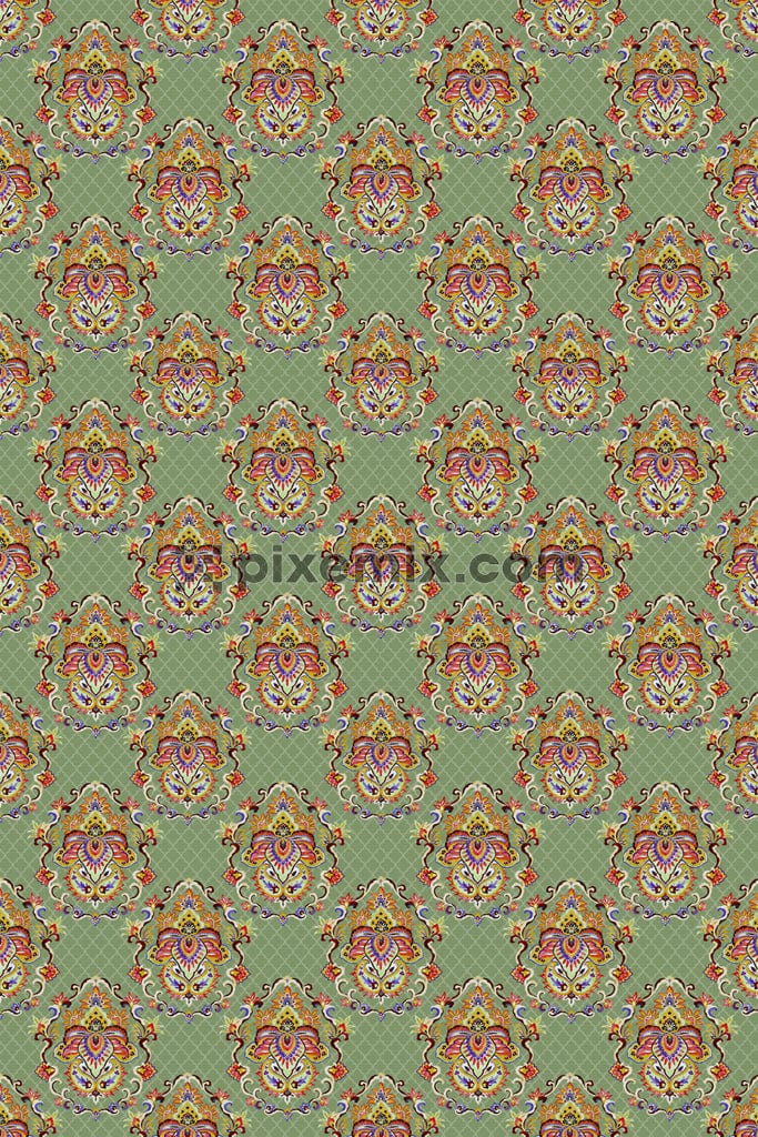 Jali and kalamkari paisley art product graphic with seamless repeat pattern