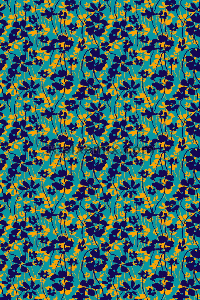Doodle florals product graphic with seamless repeat pattern