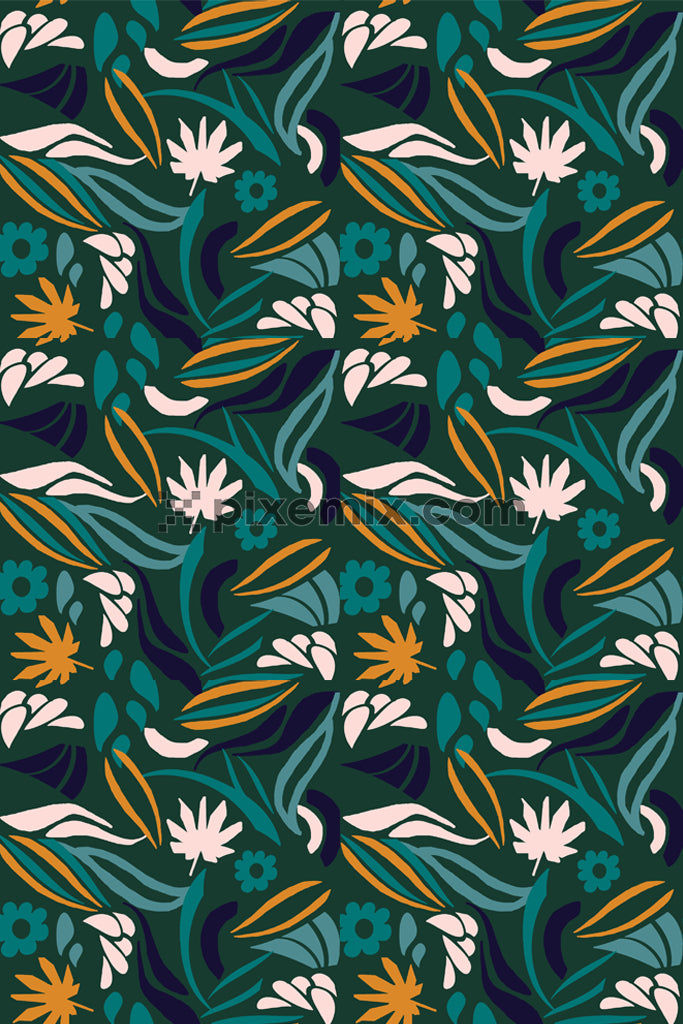 Doodle florals and leaves product graphic with seamless repeat pattern