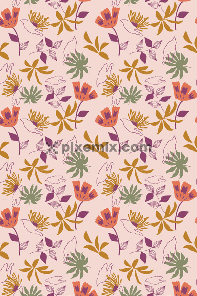 Floral and leaf product graphic with seamless repeat pattern