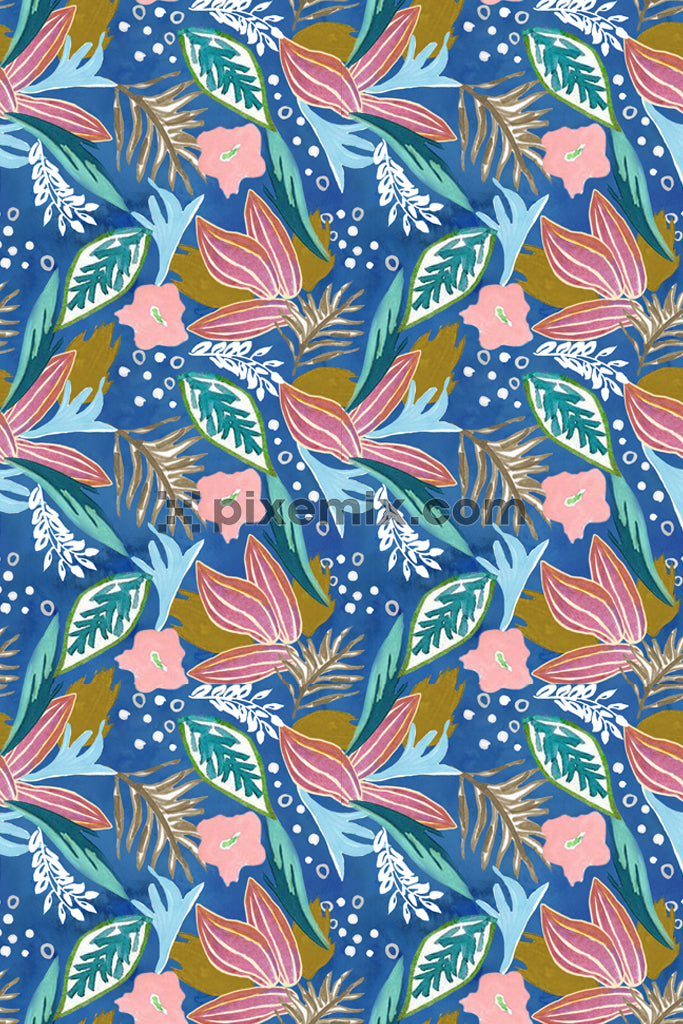 Watercolor florals and leaf product graphic with seamless repeat pattern