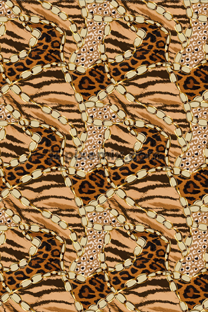 Wild cats skin and golden chain contemporary product graphic with seamless repeat pattern