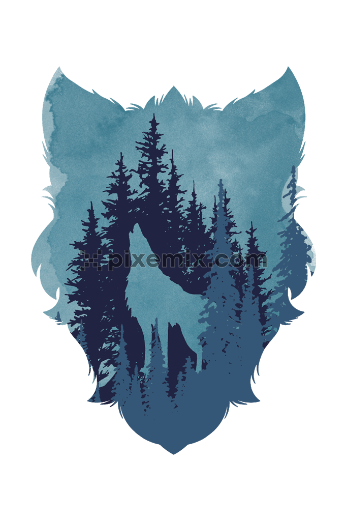 Watercolor tree and wolf face product graphic