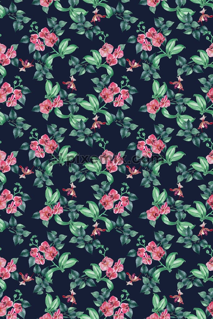Digital florals and leaves product graphic with seamless repeat pattern