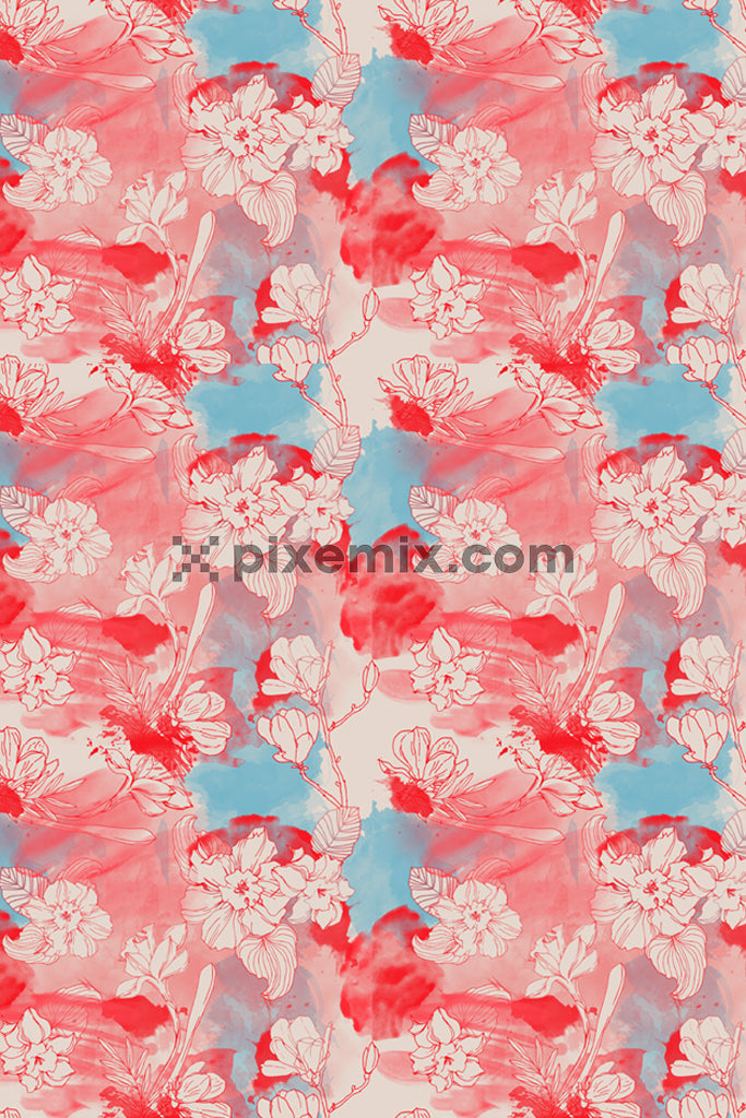 Watercolor florals and leaf product graphic with seamless repeat pattern