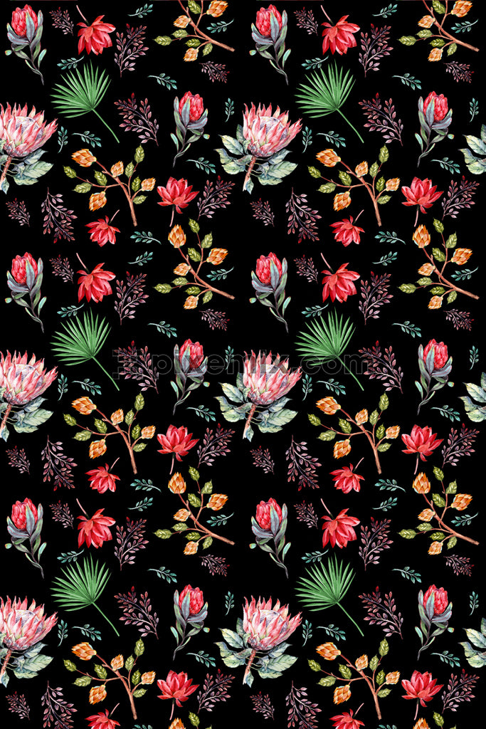 Botanical floral & leaves product graphic with seamless repeat pattern