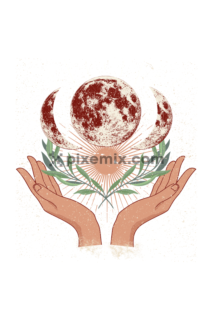 Healing hands with rays, planet & leaves vector product graphic