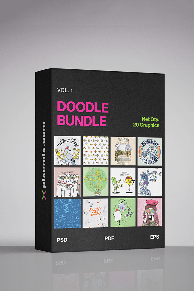 An assorted bundle pack of 20 Doodle art all over prints and placement product graphics