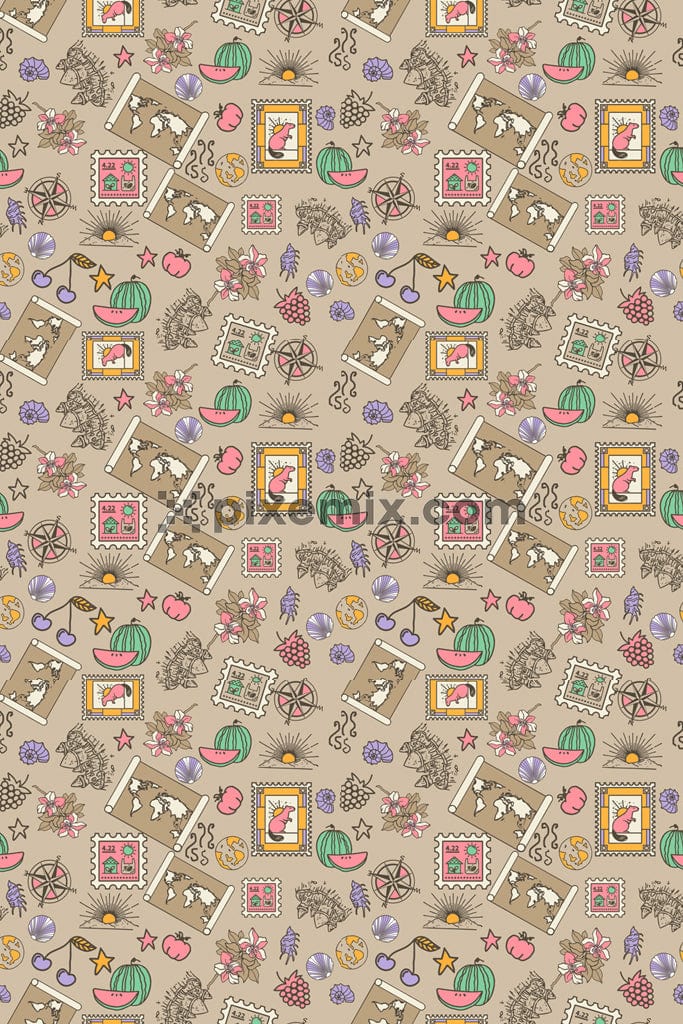 Playful doodle poster icon product graphic with seamless repeat pattern