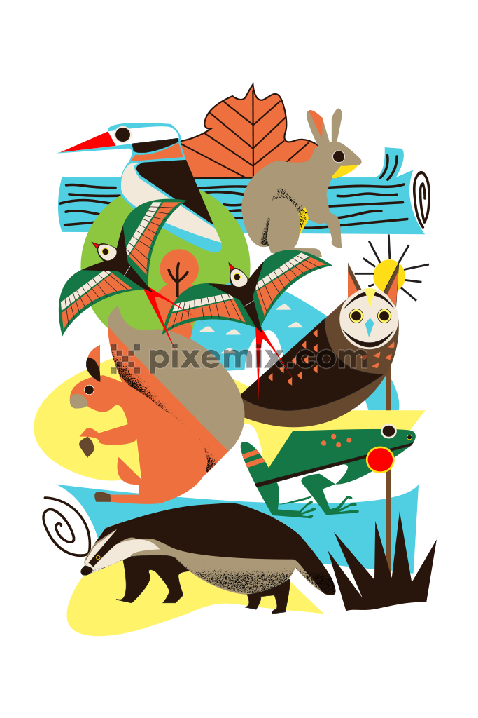 PDF, EPS-12" x 18"-300dpi-no_repeat-no_editable_layered_photoshop_psd-in_editable_vector_pdf_or_eps-no_fontsDOODLE ANIMAL ART 2237