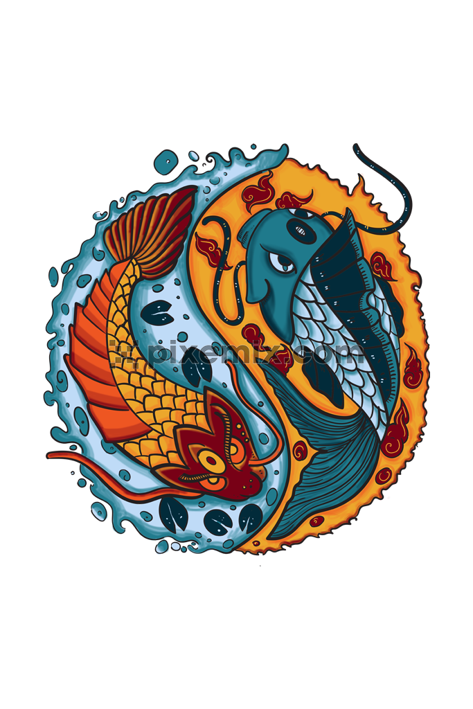 PSD -16" x 18"-300dpi-no_repeat-editable_layered_photoshop_psd-no_editable_vector_pdf_or_eps-no_fontsORIENTAL FISH 3969