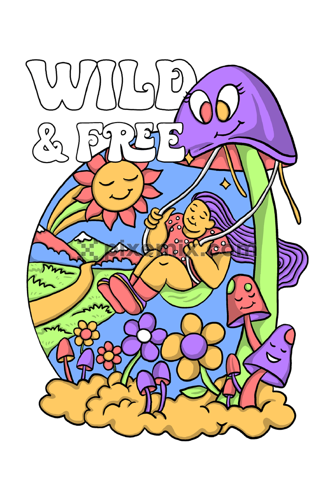 Doodle art inspired girl on a swing product graphic
