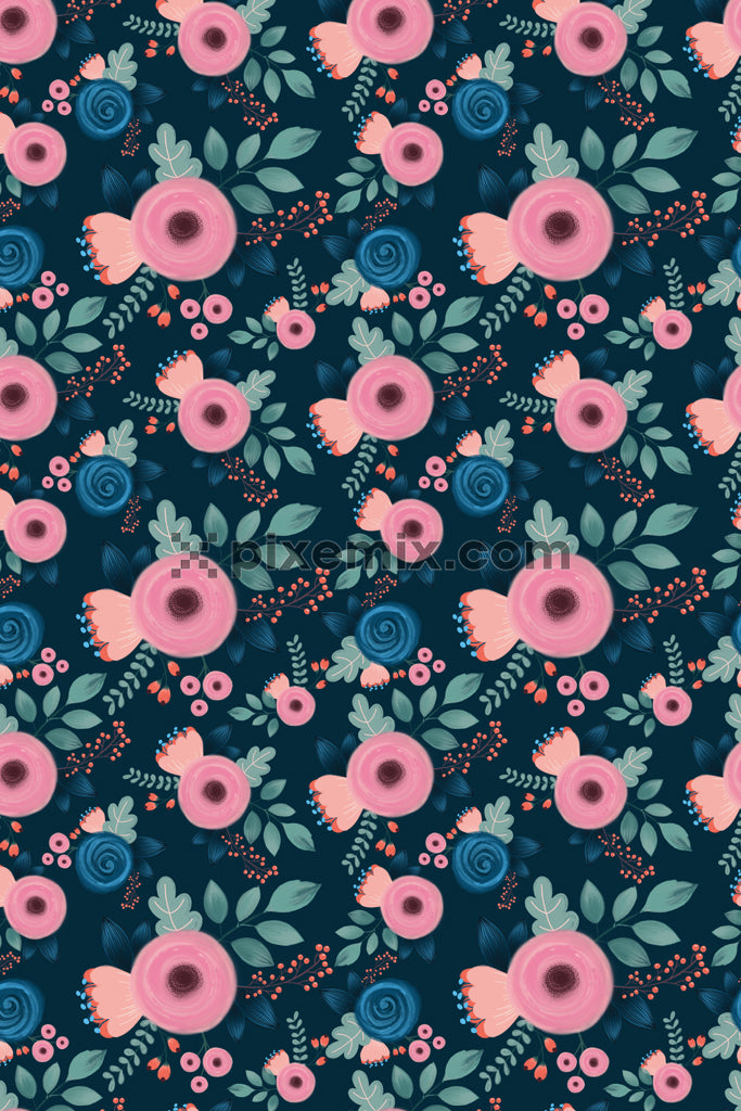 Cute bloomed florals vector product graphic with seamless repeat pattern