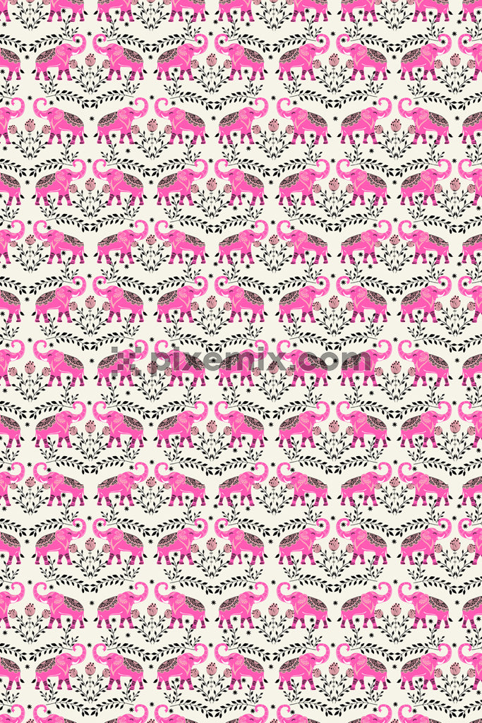 Beautiful ethnic elephant art product graphic with seamless repeat pattern