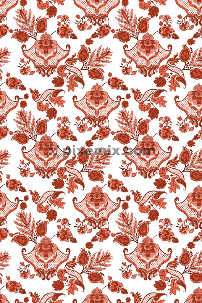Paisley florals and leaves product graphic with seamless repeat pattern