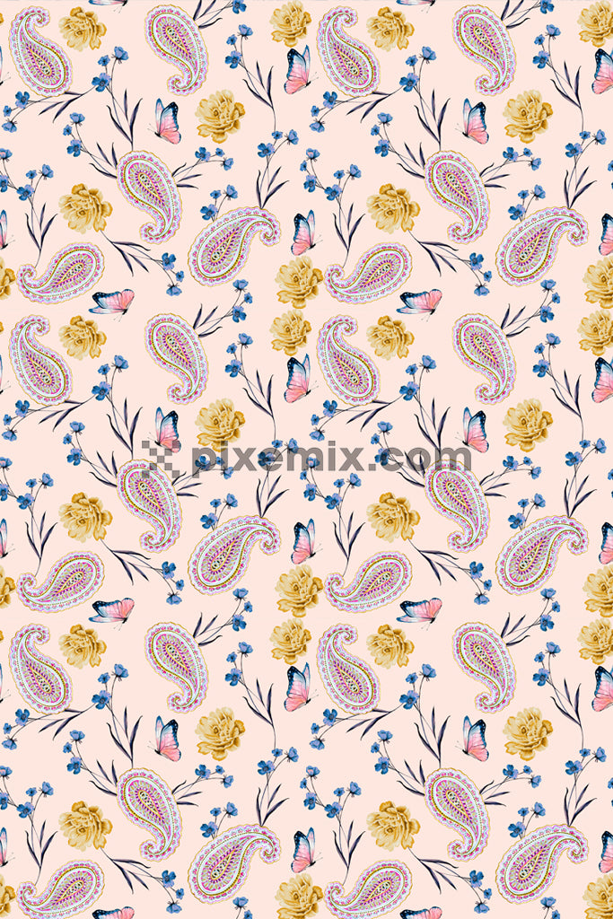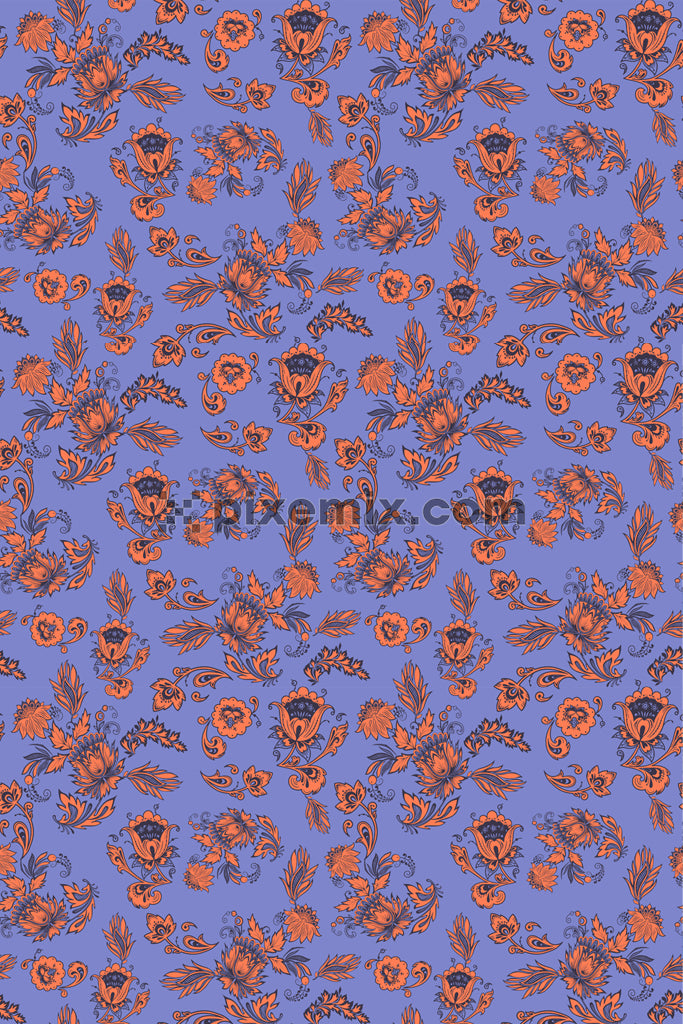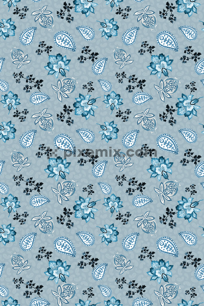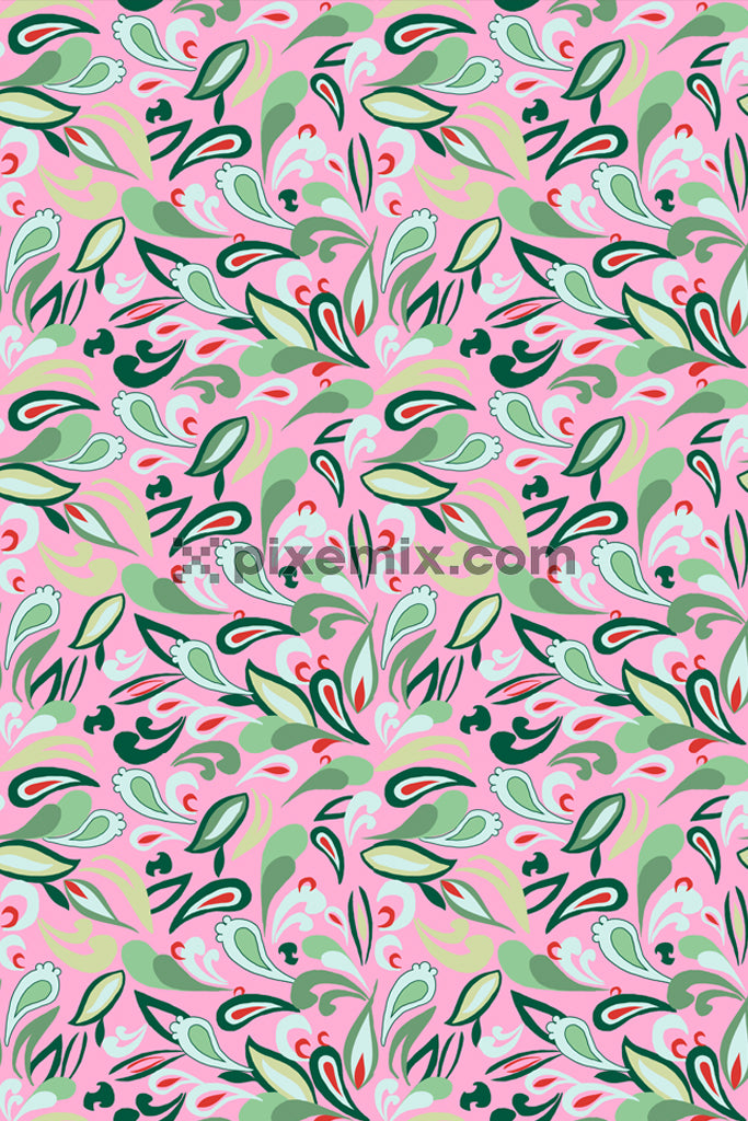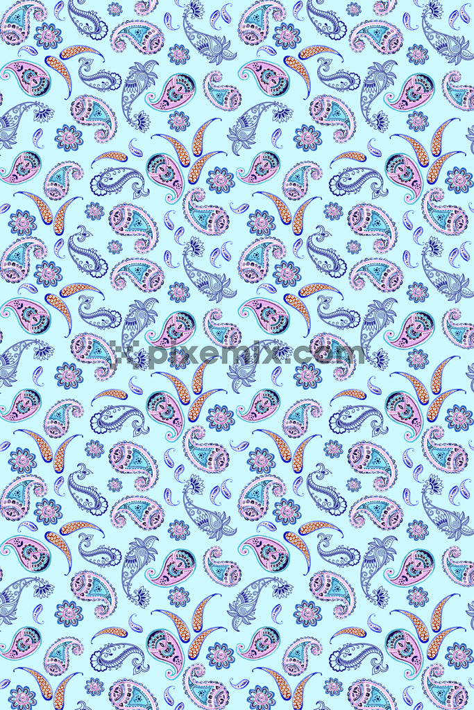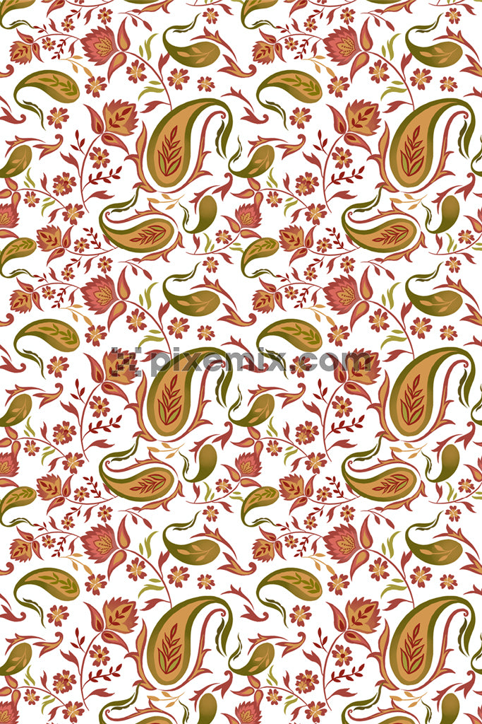 Paisley florals product graphic with seamlss repeat pattern