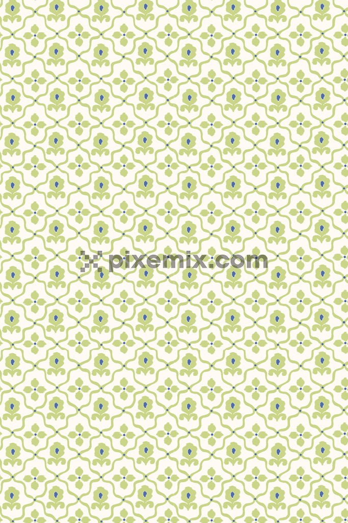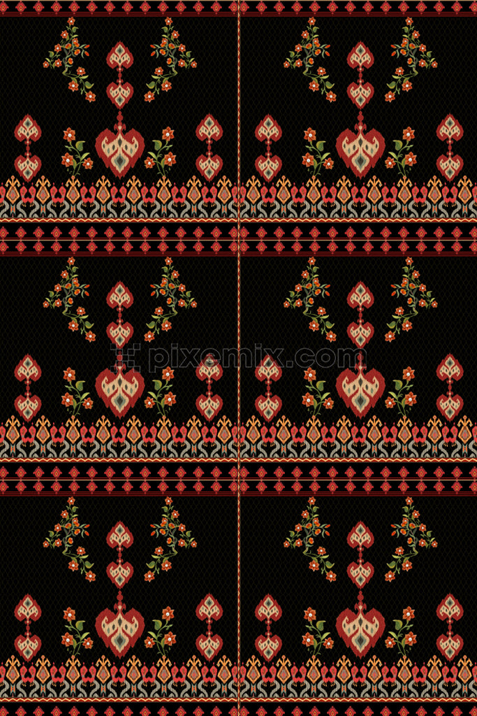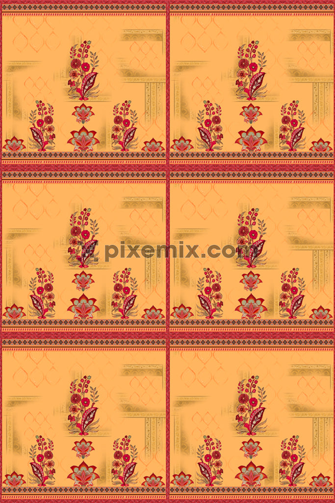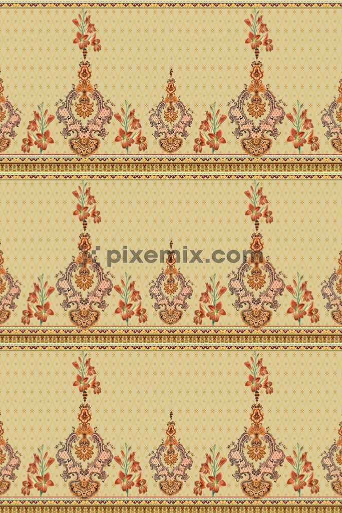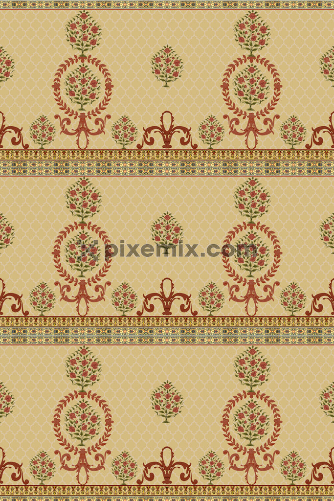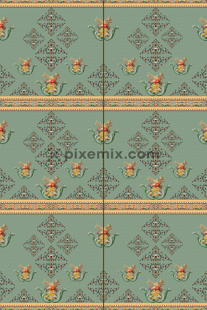 Paisley florals product graphic with seamlss repeat pattern