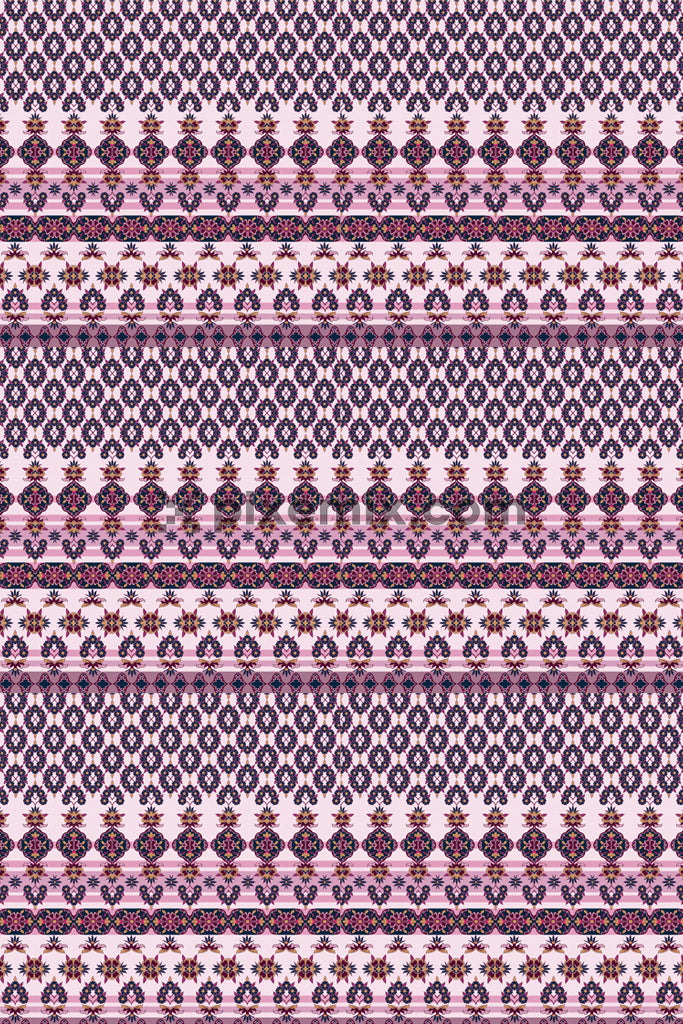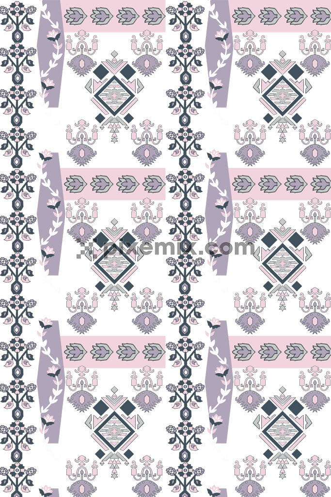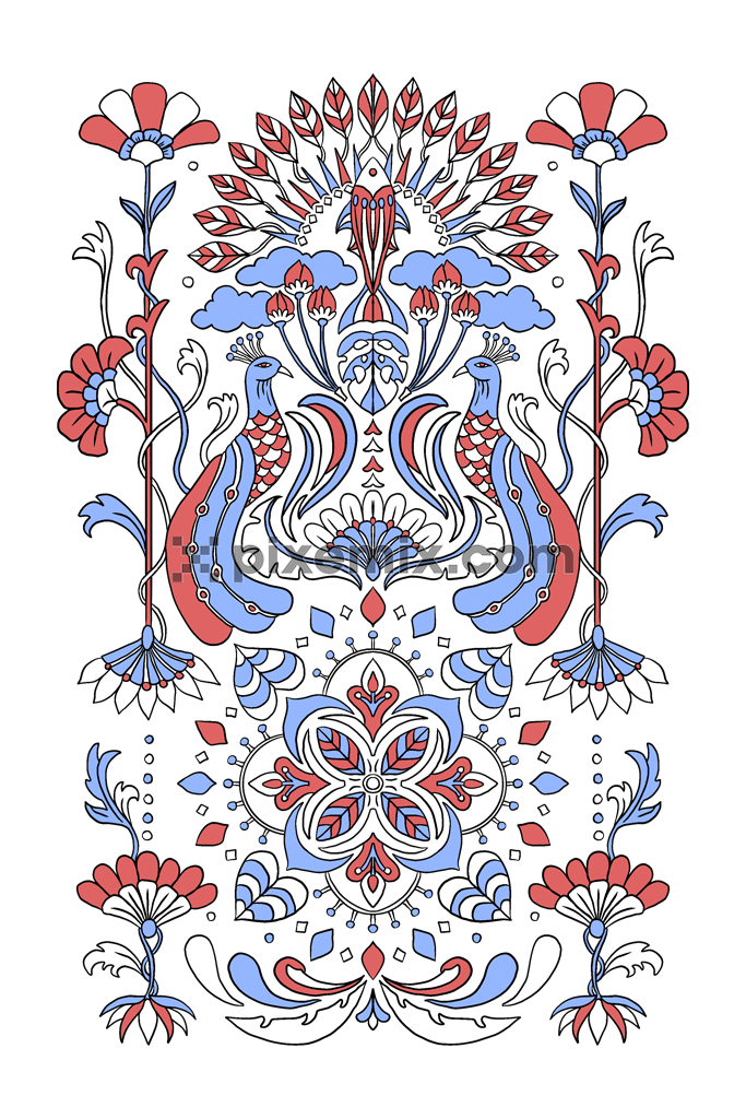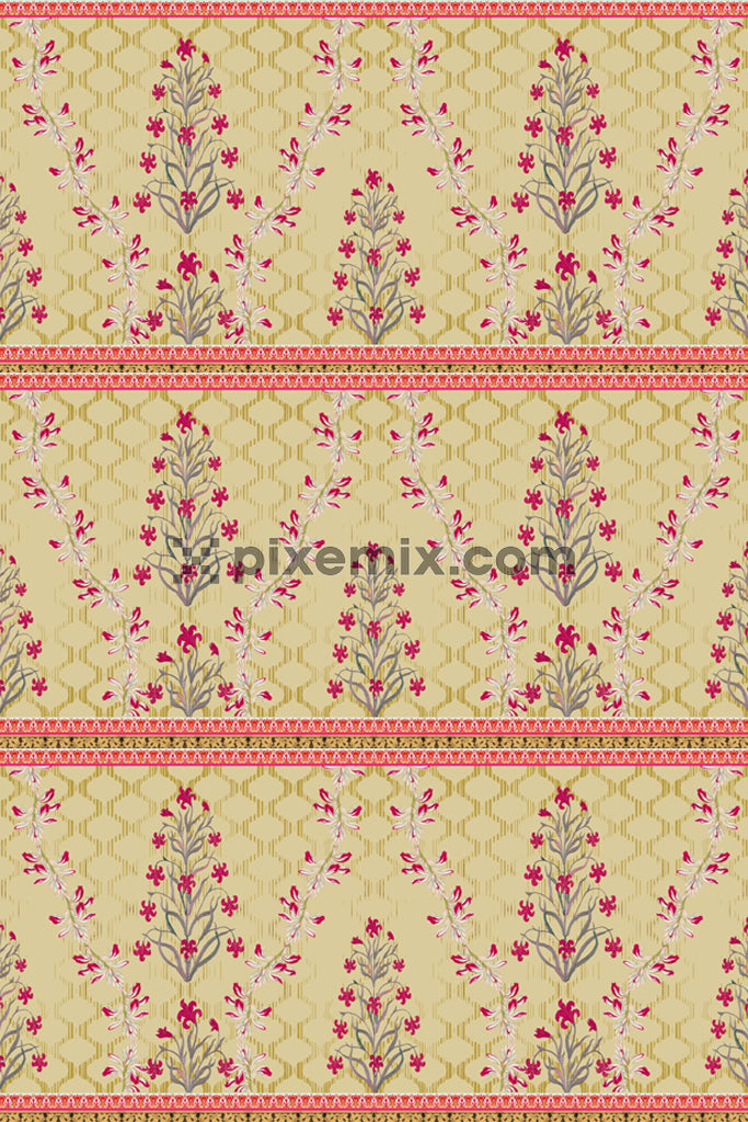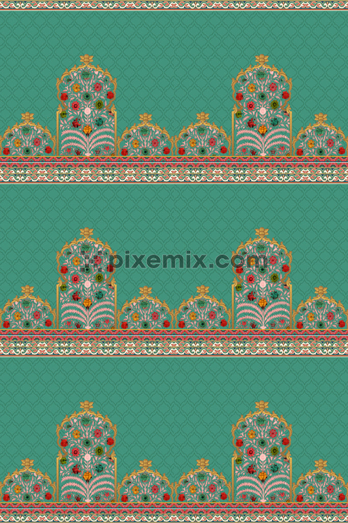 Mughal art inspired womens and elephants product graphic with seamless repeat pattern