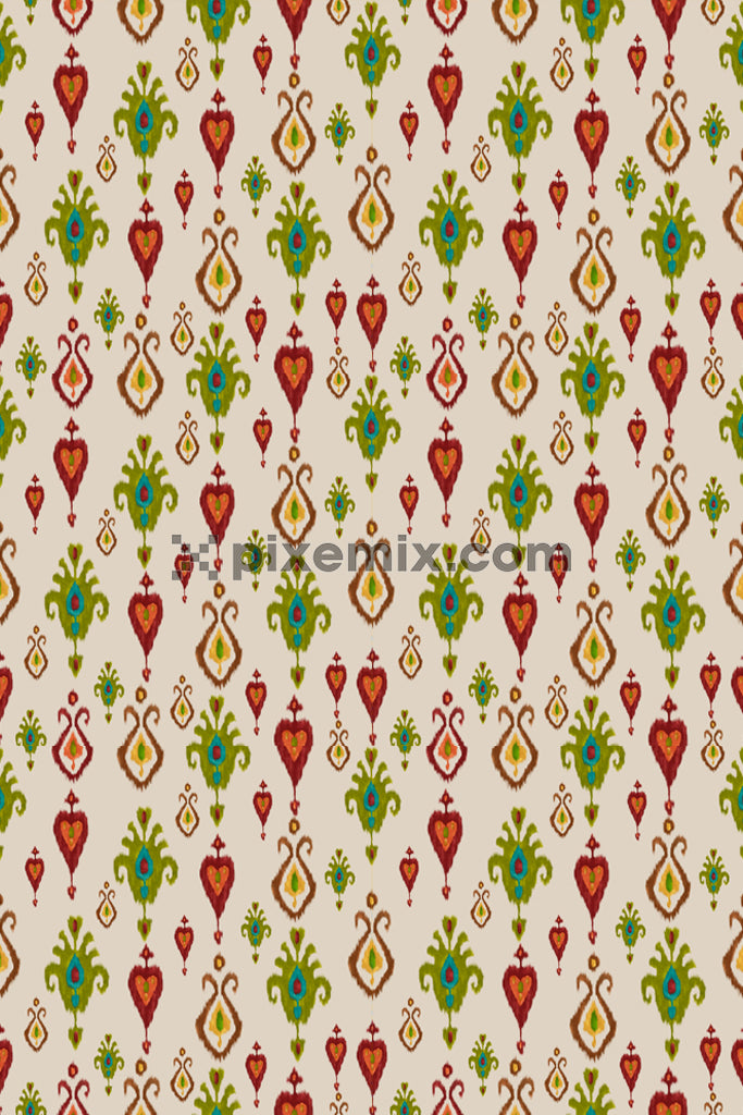 Kalamkari paisley art product graphic with seamless repeat pattern