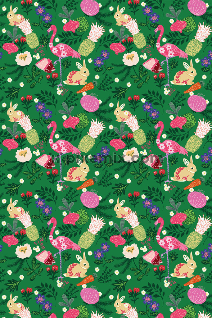 Doodel art inspired animals and bird product graphic with seamless repeat pattern
