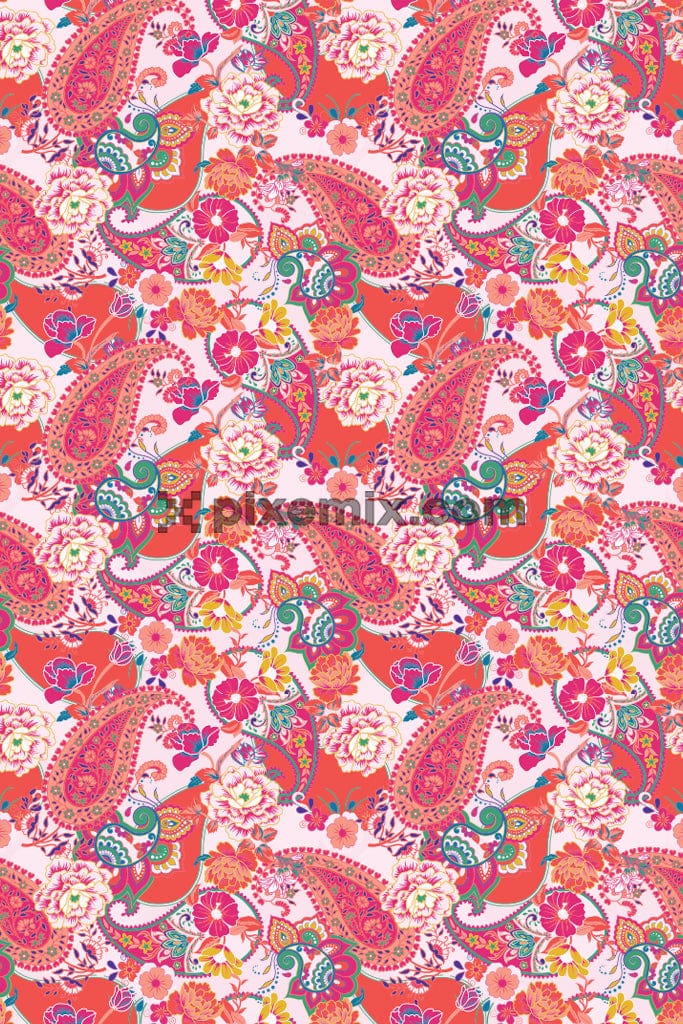 Paisley and kalamkari florals in a captivating product graphic with a seamless repeat pattern