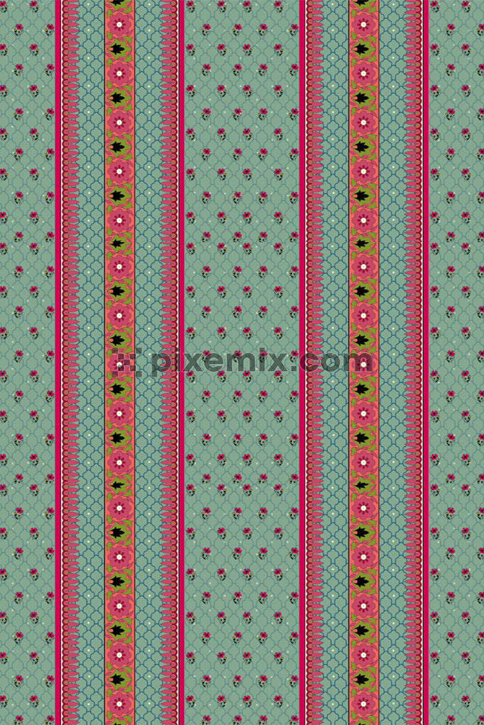 Mughal art inspired soosle florals product graphic with seamless repeat pattern