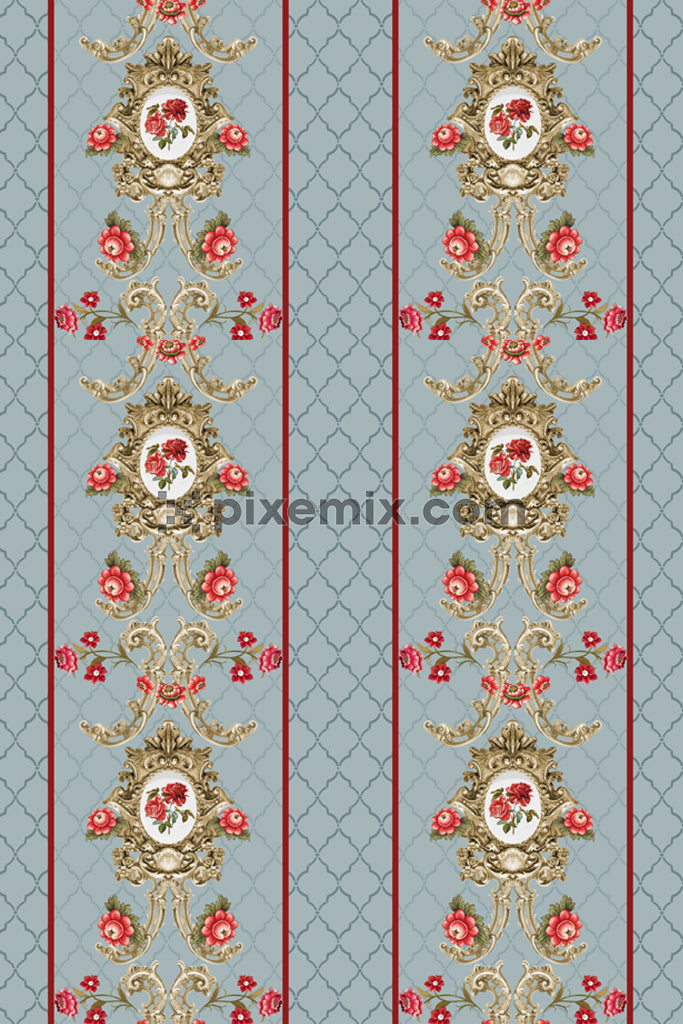 Paisley with florals art product graphic with seamless repeat pattern