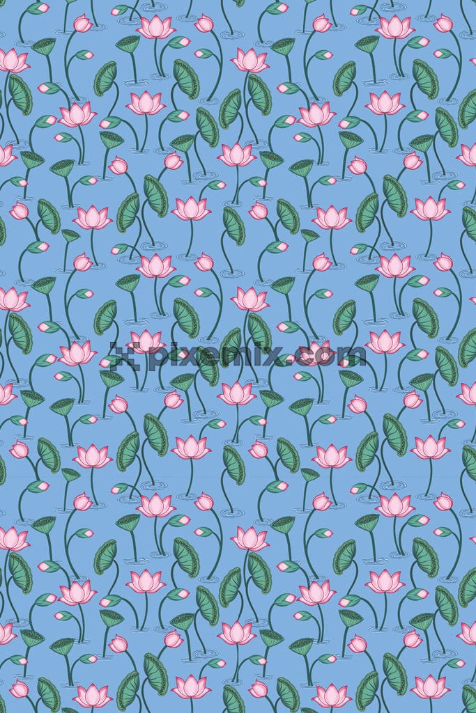 Pichwai art inspired indian lotus and leaves product graphic with seamless repeat pattern