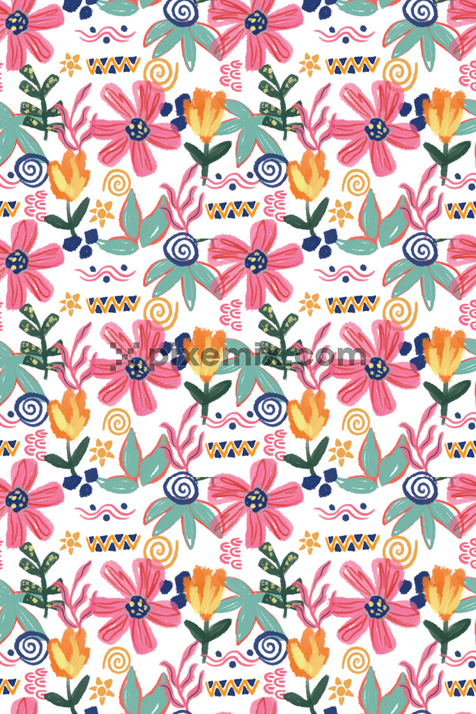 Watercolor florals and leaves product graphic with seamless repeat pattern