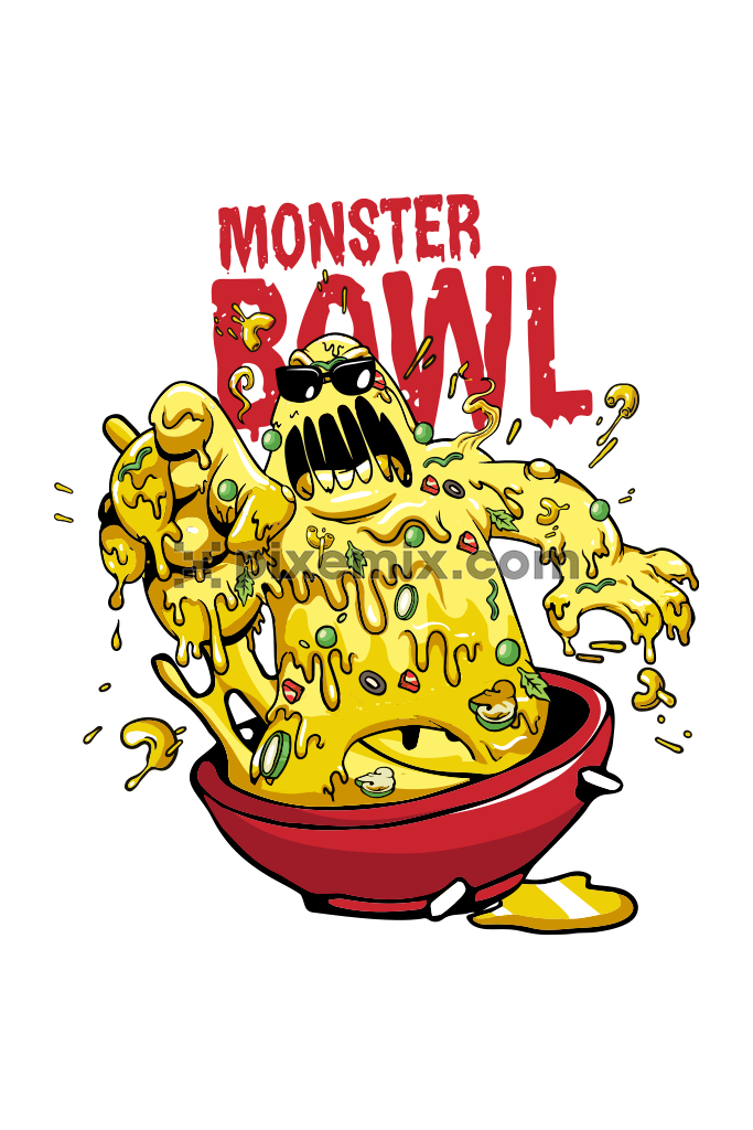 PDF, EPS-9"x14"-300dpi-no_repeat-no_editable_layered_photoshop_psd-editable_vector_pdf_or_eps-no_fontsSOUP MONSTER ON BOWL