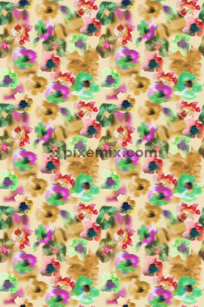 Watercolor florals and leaves product graphic with seamless repeat pattern