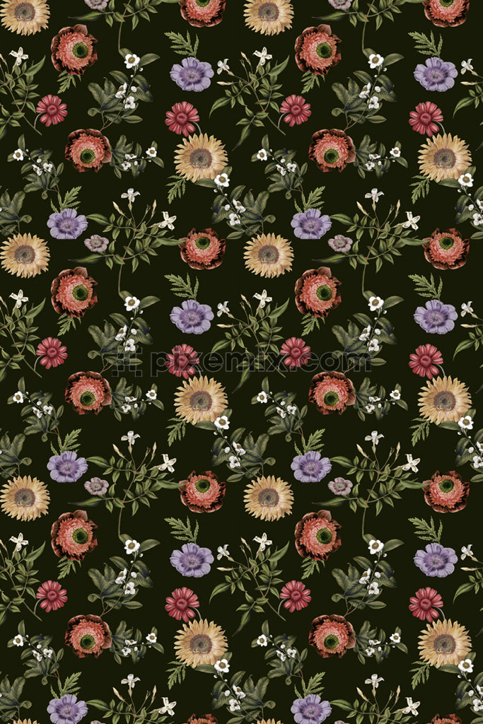 Digital florals and leaves product graphic with seamless repeat patter