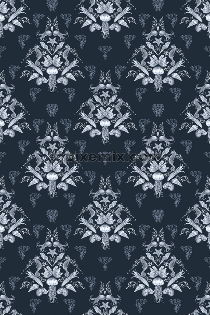Nautical inspired sea animals product graphic with seamless repeat pattern