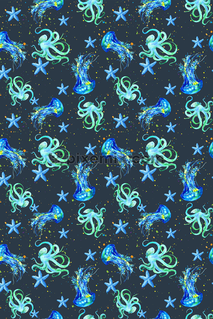 Sea animals product graphic with seamless repeat pattern