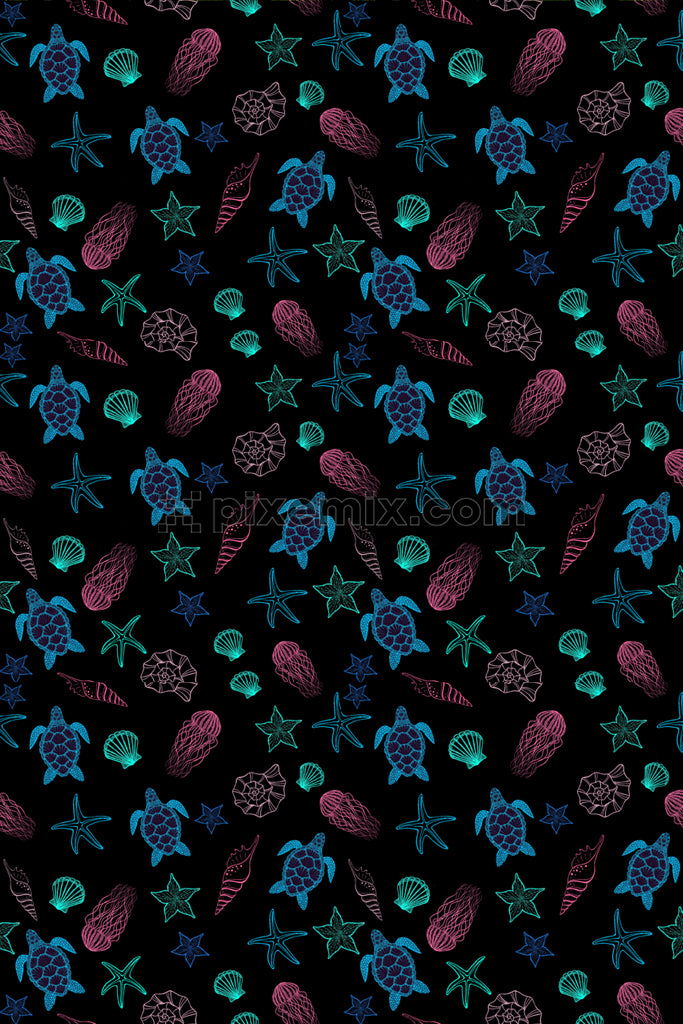 Nautical art inspried see animal product graphic with seamless repeat pattern