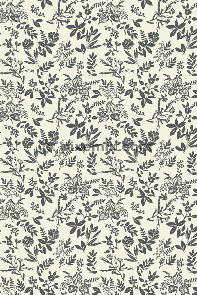Monochrome florals and leaf product graphic with seamless repeat pattern