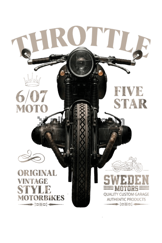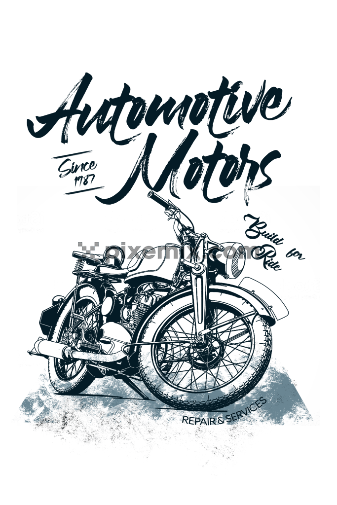 A rugged motorcycle with a vintage adventure and freedom product graphic.