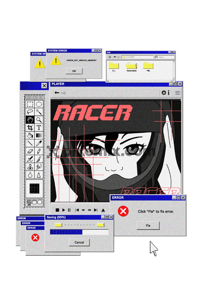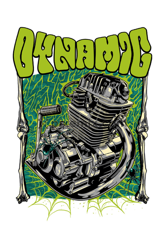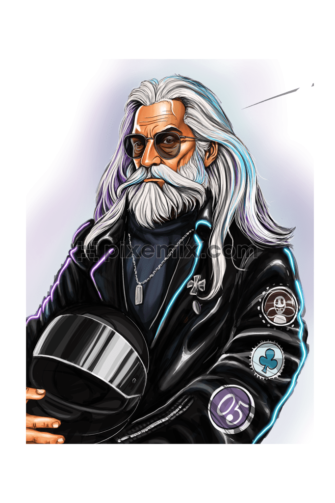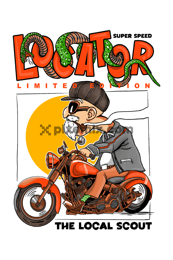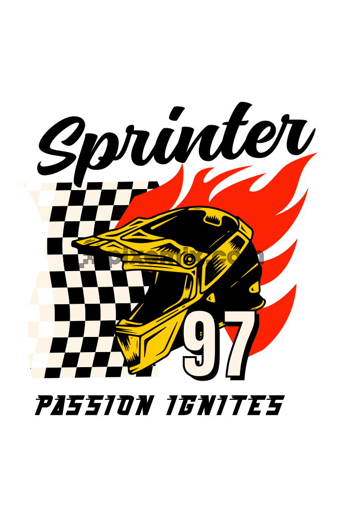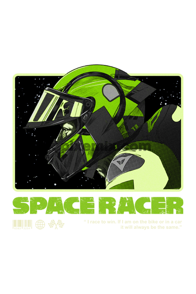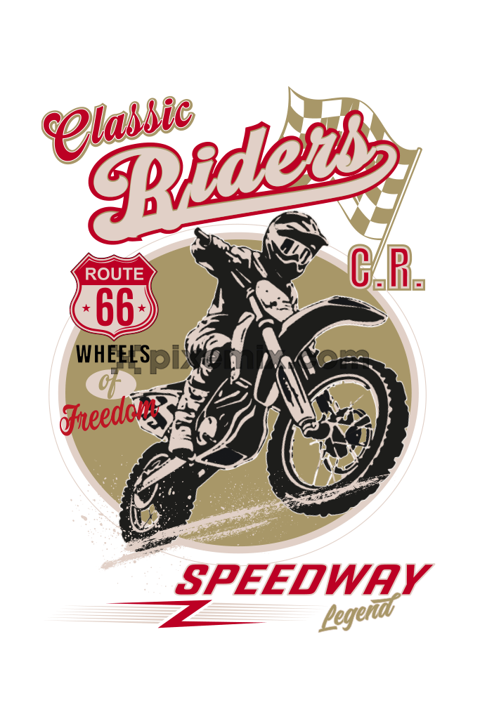 A hand drawn product graphic featuring cool racer themed inspired digital biker with flag details in watercolour effect.