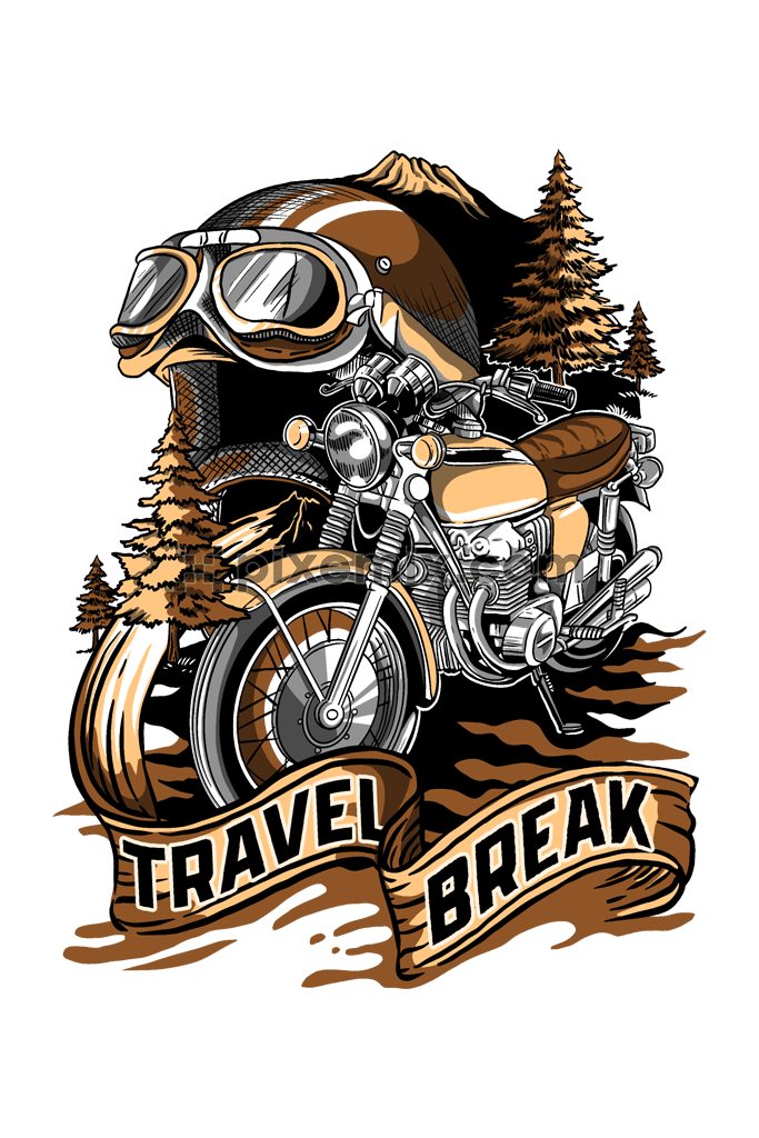 A hand drawn product graphic featuring an adventurous motorcycle rider with typography
