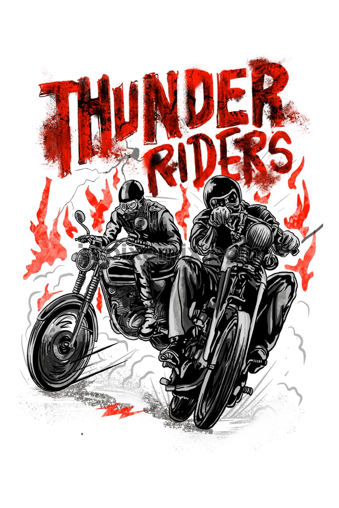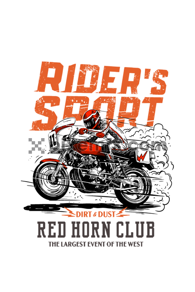 Aggressive biker illustration with grunge text “Speed Sport” in bold red and black tones product graphic.