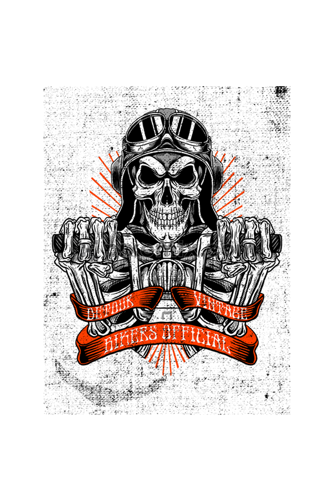 Vintage biker emblem featuring a menacing skull with goggles product graphic.