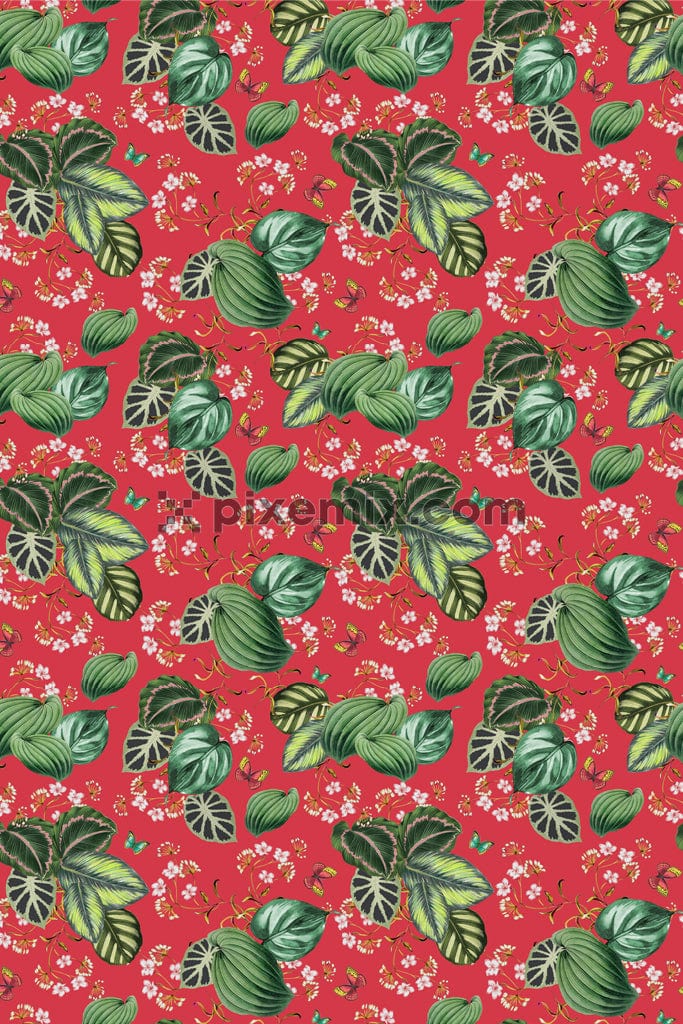 Digital illustration of flowers and insects product graphic with seamless repeat pattern