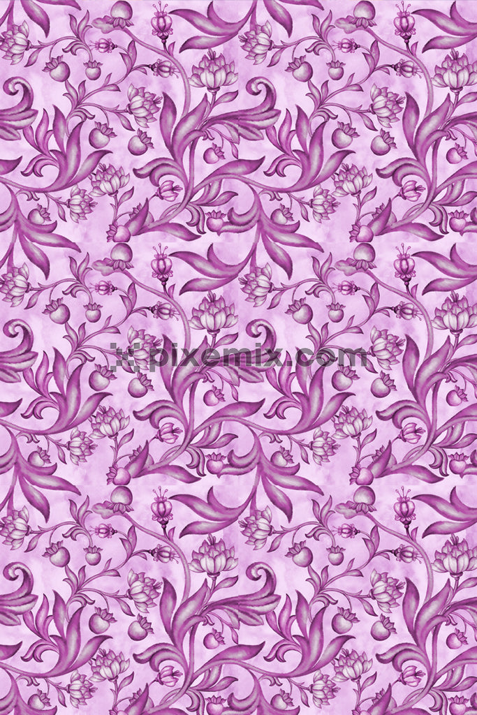 Monochrome artistic floral & leaves product graphic with seamless repeat pattern