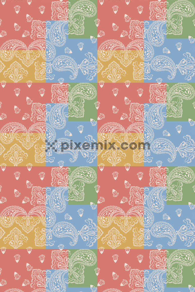 Vintage colorblock paisley product graphic with seamless repeat pattern