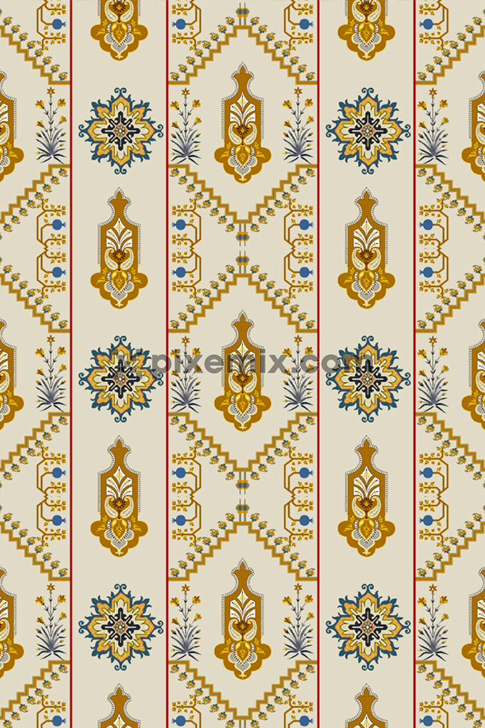 Persian inspired florals and leaf product graphic with seamless repeat pattern