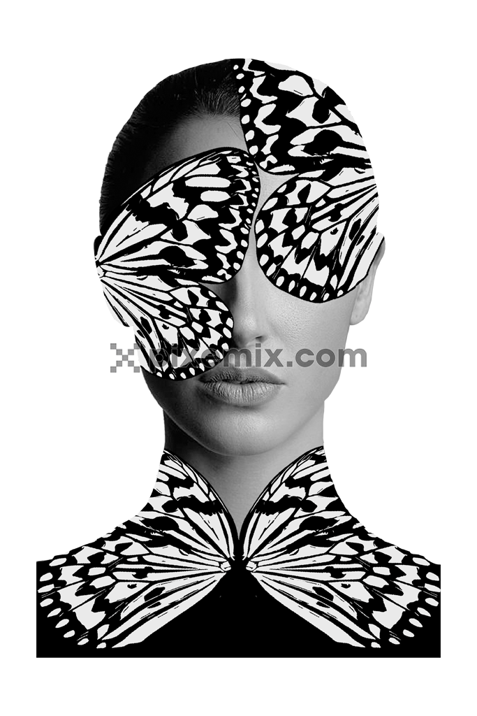 Surreal inspired woman portrait around butterfly wings product graphic