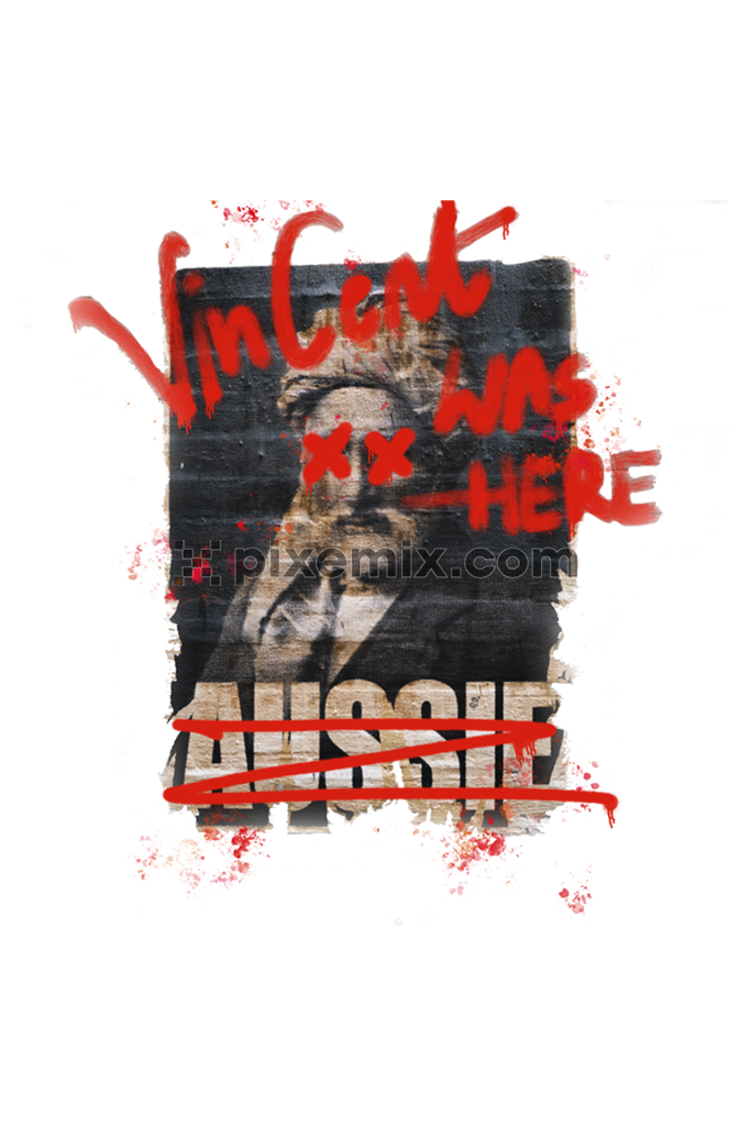 A hand drawn product graphic featuring a male along with typography and photo manipulation