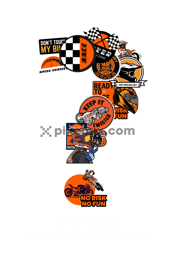 A hand made product graphic with typography and elements of motorbike and racing