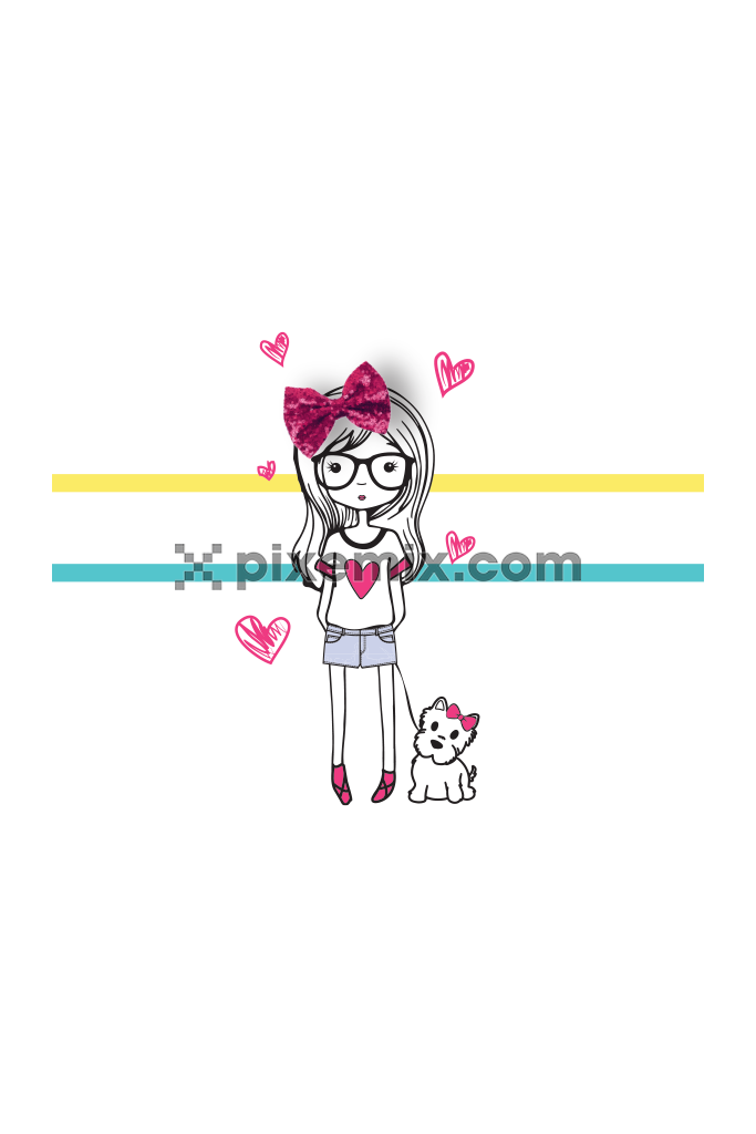 Cute bow girl with dog and stripes product graphic